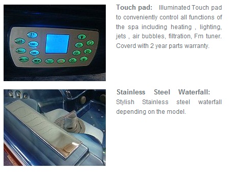 · แผงควบคุม เรื่องแสง ง่ายต่อการกดเพื่อควบคุม อุณหภูมิของน้ำ เปิด ปิดไฟ, เจ็คพ่นน้ำ, เป่าอากาศ, เครื่องกรอง , วิทยุ fm radio